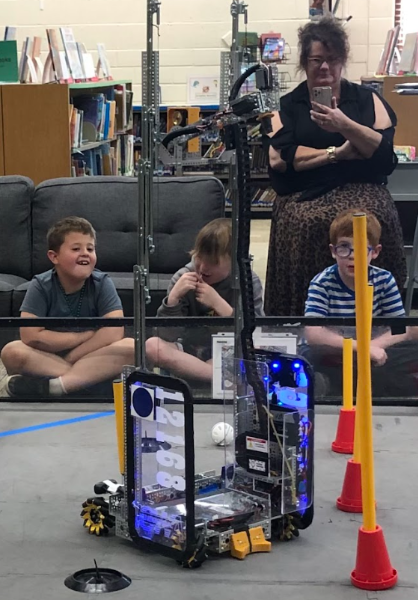 On Friday, April 14, the Robotics Team visited Longfellow to share their knowledge. The Robotics Team had a great time sharing their enjoyment with all the grades at Longfellow! It was an excellent presentation experience for when they go before the judges every year in the playoffs.
